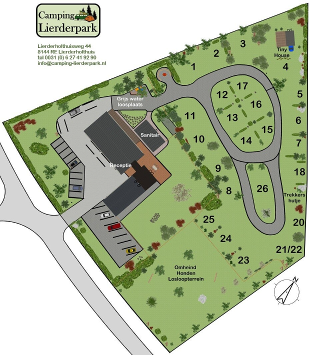 Wij proberen daar dan rekening mee te houden, maar kunnen niet garanderen dat het ook daadwerkelijk die plek wordt. De plaatsen nummers 1, 2, 3 zijn geheel en 4, 9, 10, 11, 16 en 17, 23 en 25 zijn gedeeltelijk verhard met grastegels. De overige plaatsen zijn grasplaatsen.